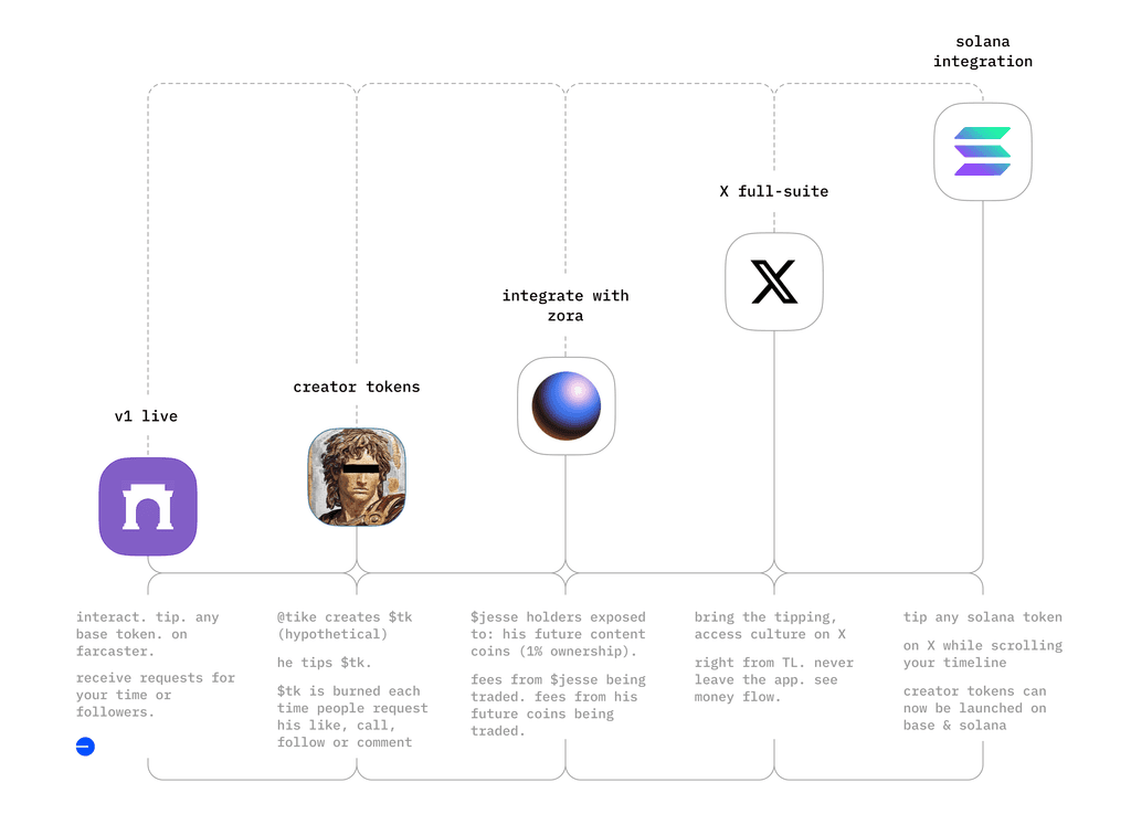 we dream to make every interaction, transfer real monetary value. we dream to make money move with each interaction on the internet. we dream to create one man network states. we dream to create a tool-kit for creator's to monetise their audience. we dream to tokenise content of all kinds. we dream to do all of this, without you having to move away from your timeline. we dream to 10x the utility to creator coins.
